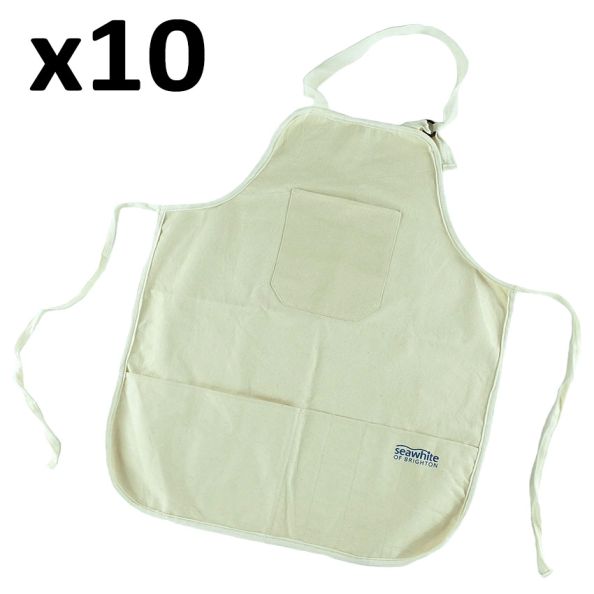 Seawhite Canvas Artist Aprons Adjustable neck strap 1x pocket at top and 4 pockets at bottom Size: 72cm (H) x 55cm (W) 10x aprons
