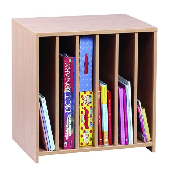 • Beech melamine unit stores books vertically in six slots • Available with castors or as pictured • W695 x D504 x H600mm