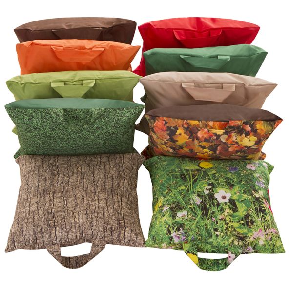 Set of realistic digitally printed and natural coloured carry cushions. Easy-grab handles make these lightweight portable cushions perfect for young learners.