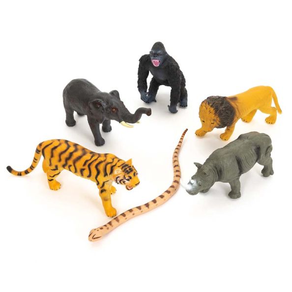 Spark discussions about animals and their habitats, or create a zoo scene with these highly detailed, jumbo safari animals. This collection of 6 engaging giant wild animal figures are sure to bring small world play to life! Spark discussions about animals and their habitats, or create a zoo scene with these highly detailed, jumbo safari animals.Their skin is textured and highly detailed allowing children to really explore this selection of animals. Suitable for use outdoors.1 x Tiger 1 x Rhino 1 x Snake 1 x Elephant 1 x Lion 1 x Gorilla