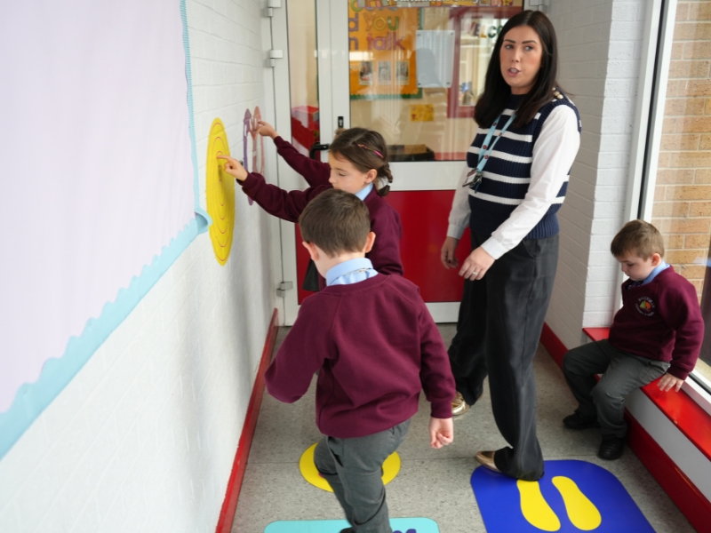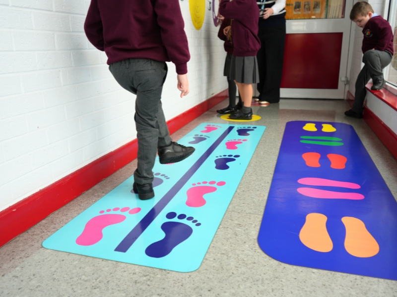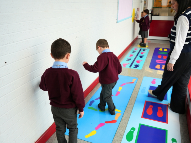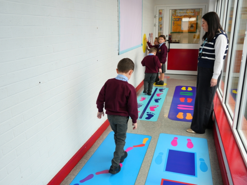 Working alongside Roisin McGuire, Learning Support Coordinator and Vice Principal at Ballyoran Primary School, Creative Activity collaborated to design and install a bespoke sensory circuit for the foundation stage corridor that would bring both fun and function to the school’s daily routine.