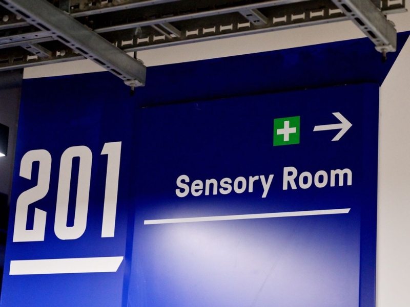 Each space was fully bespoke, incorporating Everton Football Club branding while carefully balancing visual identity with calming sensory design. The result is a series of environments that feel connected to the wider stadium experience, without compromising on comfort, safety or sensory regulation.
