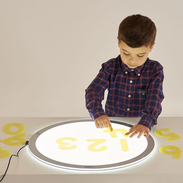 Transparent yellow silicone numbers which are strong, soft and pliable and can be used in everyday play - in the sand pit, on the floor, on a light panel and in water. In a school friendly font they are useful for demonstration purposes, for display or for children to use themselves. Ideal for pre-schools, nurseries and primary schools, the sets are easily cleaned after use in soapy water or in a dishwasher. Additional sets are also available, each in a different colour so they can be easily sorted when in use together: SiliShapes® Plain Alphabet - Blue (54503) SiliShapes® Trace Alphabet - Pink (54505) SiliShapes® Dot Numbers - Green (54511) What the 2014 PPS Silver Award testers said: "The children were immediately attracted to these as the colours were bright and eye-catching. They loved the feel of them and said there were like pancakes! They are excellent for number and letter recognition and counting or spelling. The dots also encourage counting and matching. The children enjoyed tracing the shape of the number and letters which encourages correct formation. A fantastic accessory for the light panel too. A very reasonable price!"