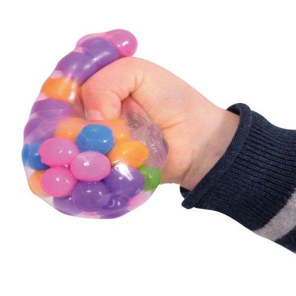 This colourful stress ball is wonderful for relieving tension and pent up frustration. Calms down the nerves of adults and children.