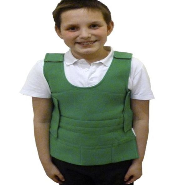 Made from soft, breathable, non-flammable material, these vests slip over the head with ease and close at the shoulders and sides with Velcro® for easy adjustment and a snug fit. Weight packs are inserted into the eight concealed pockets (four at the front, four at the rear) of the vest. Each pocket has Velcro® to keep the weight packs in place. The length of the vest can be adjusted by folding up the lower part and securing using the Velcro® strip on the inside. Machine washable. Available in four sizes. Size: Medium